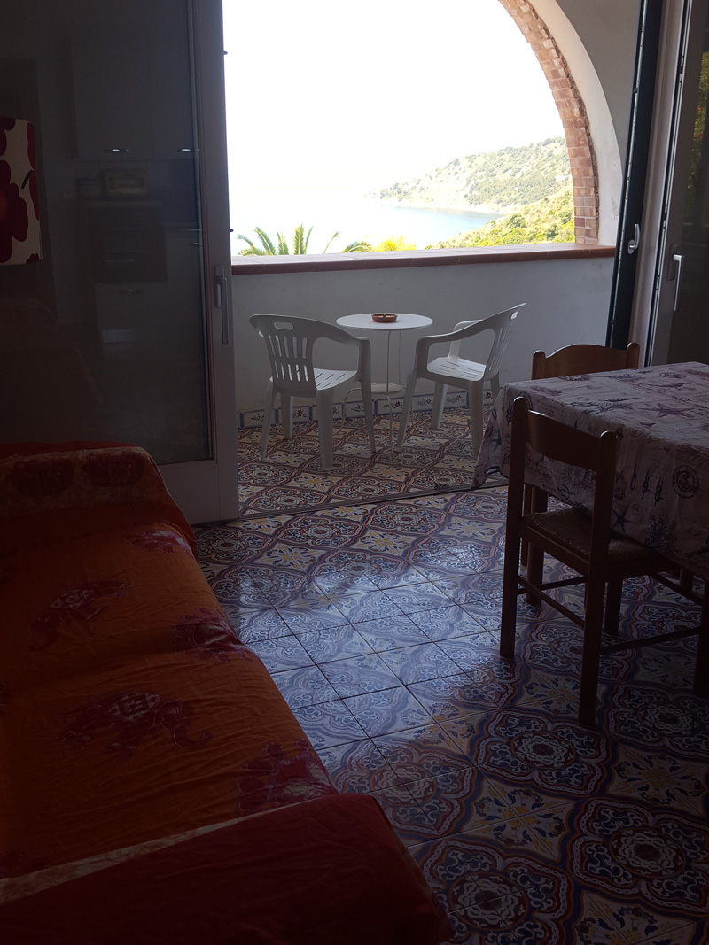 Panoramico e nuovissimo all'interno appena ristrutturato, composto da 2 camere da letto (di cui una molto grande con letto matrimoniale e divano letto doppio e l'altra matrimoniale), soggiorno con angolo cottura e divano letto doppio, due bagni e balconata intorno all'appartamento.