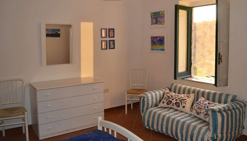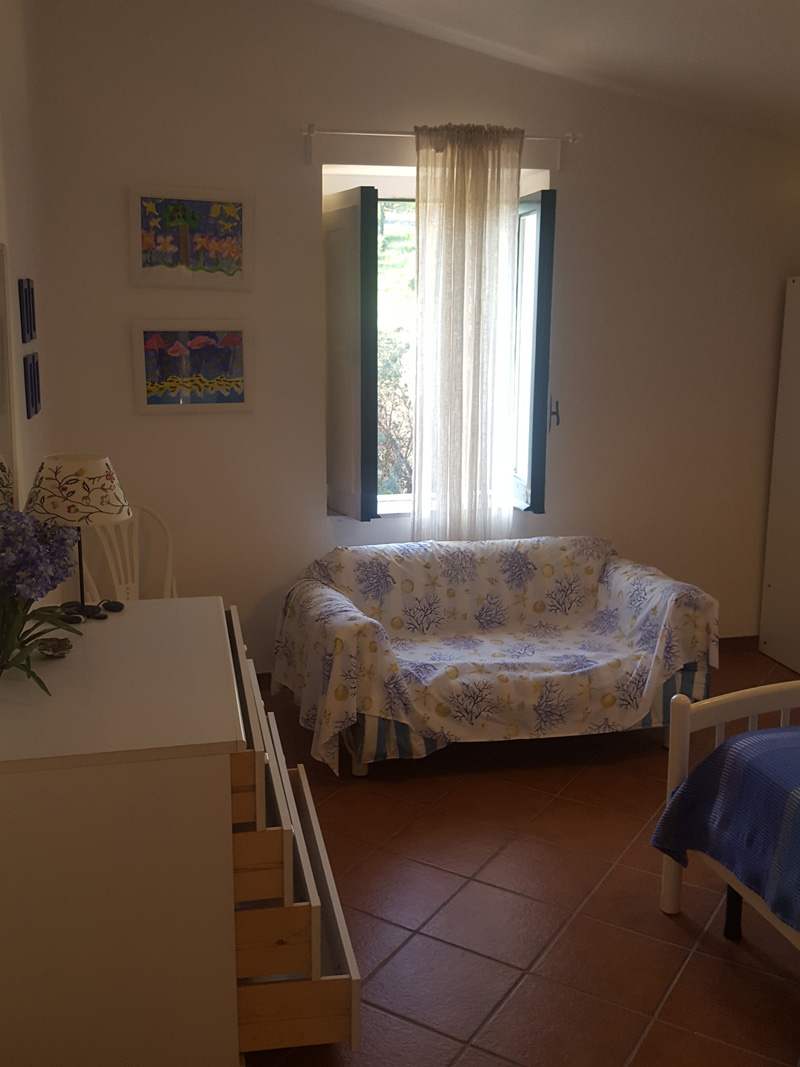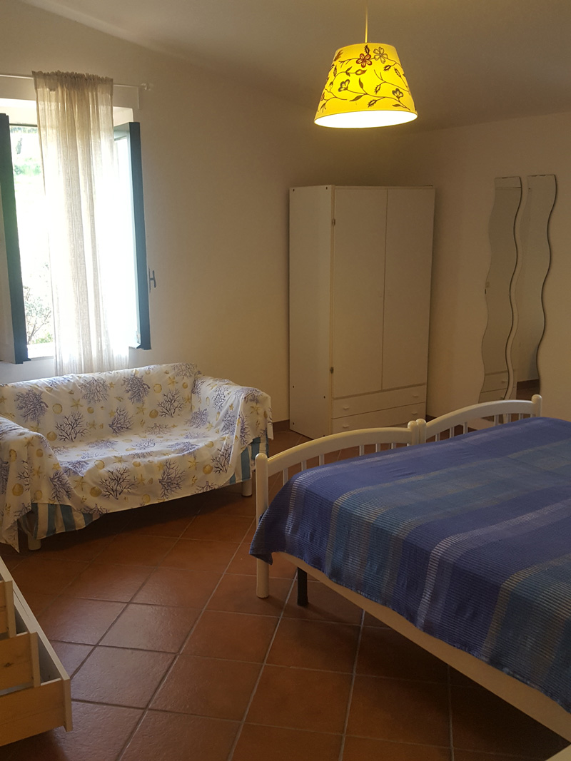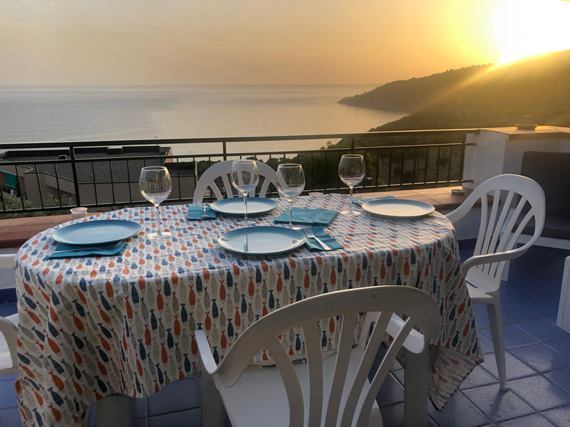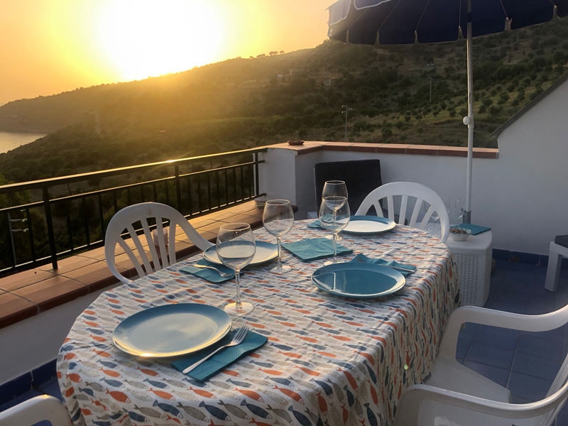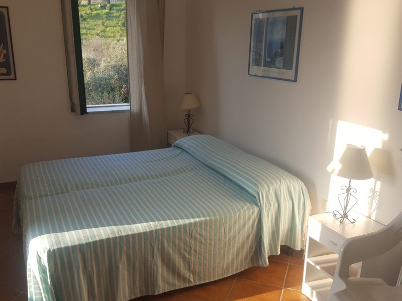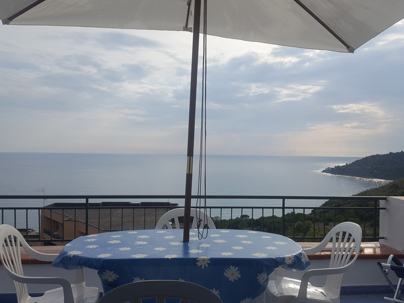 Composto da 2 camere da letto (+ un terzo letto in ciascuna camera), cucina abitabile, terrazzo panoramicissimo e attrezzato con tavolo, sedie, sdraio (e barbecue).