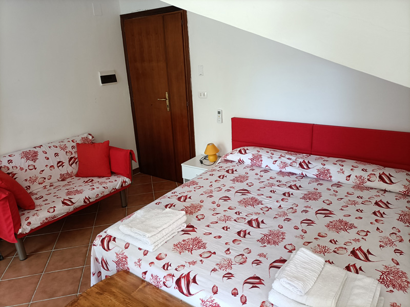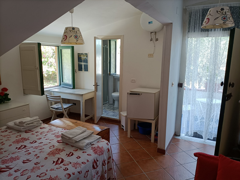 Camera matrimoniale con ingresso indipendente con possibilità di letto supplementare, bagno e piccolo balcone.
